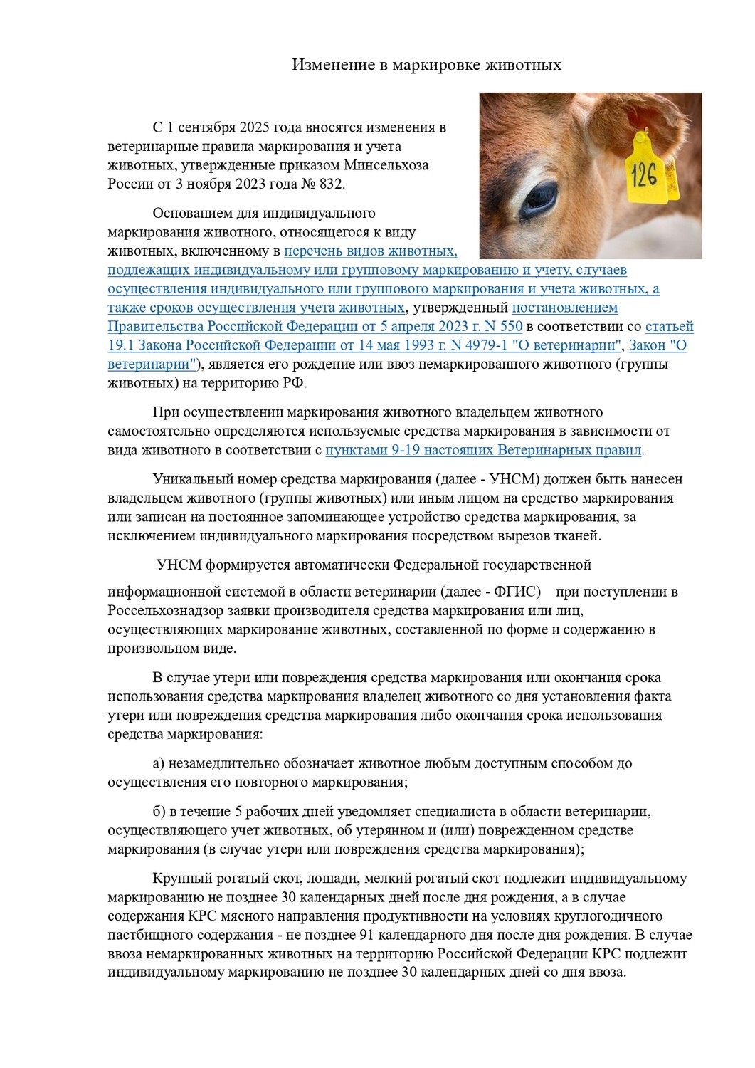 Изменение в маркировке животных